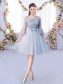 Grey Lace Up Court Dresses for Sweet 16 Lace and Belt 3 4 Length Sleeve Knee Length