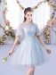 Mini Length Lace Up Dama Dress for Quinceanera Grey for Prom and Party and Wedding Party with Lace