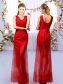 Red Sleeveless Tulle Lace Up Quinceanera Court of Honor Dress for Prom and Party and Wedding Party