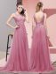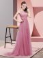 Beautiful Pink Sleeveless Sweep Train Lace Prom Evening Gown