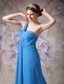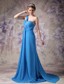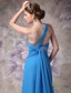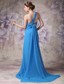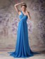 One Shoulder Beaded Ruching Chiffon Blue 2013 Prom Dresses