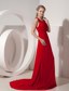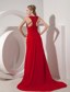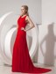 Pretty Wine Red Prom Dress with Column Scoop Chiffon Brush Train