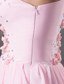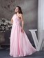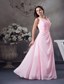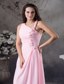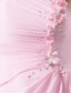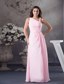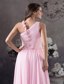 Ruched Chiffon Beading Pink Prom Dress with Floral Embellishment