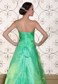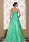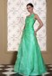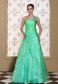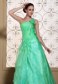 One Shoulder Flowers Turquoise Prom Dress in A-line Design