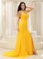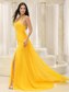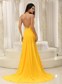 High Slit Yellow Halter Chiffon Brush Train prom Dress