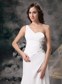 A-line One Shoulder White Beading Ruched Brush Dress for Prom