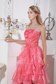 Organza Watermelon Red High-low Prom Dress with Ruffled Layer