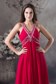 Red Empire V-neck Beaded long Criss Cross Prom Dress For Women