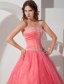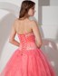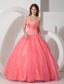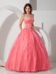 Sweetheart Appliques With Beading Coral Red Quinceanera Dresses