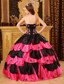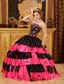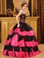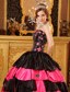 Taffeta Embroidery Strapless Tiered Black and Red Quinceanera Dresses