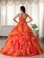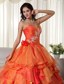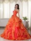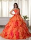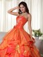 Orange Sweetheart Appliques Ruffles Natural Waist Quinceanera Dress