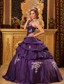 Sweetheart Taffeta Appliques Purple Dresses for Quinceanera