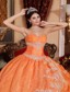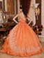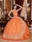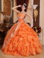 Organza Sweetheart Appliques Orange Ruffles Quinceanera Dress