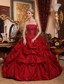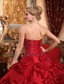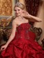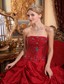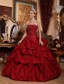 Tailor Made Strapless Pick Ups Red Beaded Quinceanera Dress