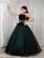 Elegant Strapless Tulle Beading and Feather Dress for Quince