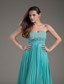 Pleat Empire Long Beading Turquoise Dress for Prom