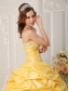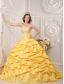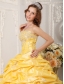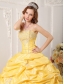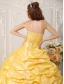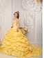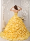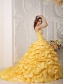 Yellow Ball Gown Strapless Court Train Taffeta Appliques and Beading Quinceanera Dress