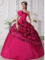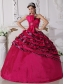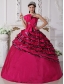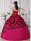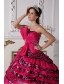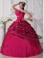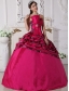 Fuchsia Ball Gown Strapless Floor-length Zebra Beading Quinceanera Dress