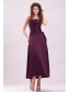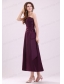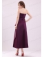 Cheap A-Line Strapless Ankle-length Purple Ruching Prom Dress