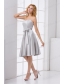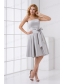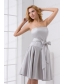 Cheap A-line Strapless Grey Mini-length Prom Dress with Bowknot
