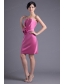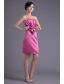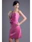Column Strapless Rose Pink Ruching Taffeta Mini-length Prom Dress [MDC6FFPD0897]