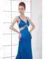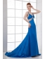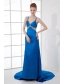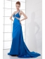 Spaghetti Straps Empire Blue Chiffon Beading Brush Train Prom Dress