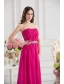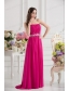 Hot Pink Empire Strapless Ruching Beading Brush Train Prom Dress