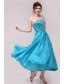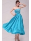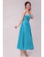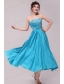 Elegant Aqua Blue A-Line Strapless Taffeta Beading Ankle -length Prom Dress
