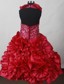 Lotus Neckline Little Girl Pageant Dress With Flowers Skirt in Red MDCCXMFG21