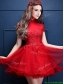 Luxurious High Neck Short Sleeves Prom Dress with Appliques and Beading MDCBMT0112