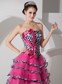 Wonderful and flattering! A fitted strapless bodice made of zebra print makes this dresss stunning.A special floral design adds interests to it.The skirt is composed by layers of organza with zebra ruching shapes a dramatic contrast.A corset lace up back make the dress well fitted.Such a cute and classic little dress that would be well for any formal or dressy occasion.