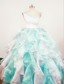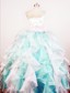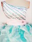Fun organza pageant dress A fun way to gain all the attention walking on stage with this dreamy creation. Rows of beaded details adorn the bodice gathering at side of waist with a brooch detail. A diagonal neck elongates on a single shoulder strap topped off with a jeweled brooch matching the one at the waist. A diagonal contrasting color asymmetric cinch adds definition to this piece. Layers of ruffled organza adorn to perfect the beauty of the skirt spreading admiration to the audience.