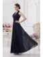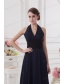 Navy Blue Halter top Long Prom Dress with Ruching and Lace MDC6FVPD270
