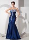 Navy Blue Ruching Mermaid Sweetheart Evening Formal Gowns with Rhinestones MDCGNTB080824