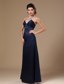 Navy Blue Satin Column V-neck Formal Evening Prom Gowns MDCAFESE19