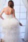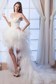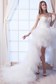 Infuse your special day with your signature esprit when you wear this Can-Can style gown dress. The strapless, sparkle studded bodice features a sweetheart-shaped neckline and contoured waist. The bi-level skirt frills with feathery frou-frou ruffles to mini length in front, then flows to a fabulous full-length train in back.