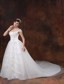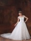 Off-the-shoulder Chapel Train Beading and Appliques Bridal Dress MDCHXQD091213