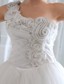 The richly detailed design of this A-line wedding gown will blow your mind! Floral patterns are embroidered all across this sublime dress, whose bodice fits closely and is topped off by a one-shoulder neckline rolling flowers defines on the strap and the bodice. Glittering beads are sprinkled across the rolling flowers.The A-line floor lenth skirt is fnished by the rolling flowers to add the charm. The lace up back allows to easy up and off.Romantic and gorgeous.