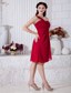 One Shoulder Red Short Chiffon Bridesmaid Dress for Juniors MDCUNION17T08