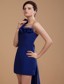 This royal blue dress features one shoulder strap which is decorated with hand made flowers. The mini length skirt will show your sexy legs and wonderful shoes. The hidden zipper on the back makes for easy off and on and secures the dress in place. At the waist part, a hand made flower decorated and extends to the floor to be a watteau train. A quite special dress for any party!