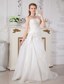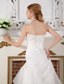 This kind of wedding dress features its strapless design in a-line silhouette with lace and beading. It is a perfect dress combined by lace and organza fabric. The clic lace fabric covered the bodice and the dropped waist with ruching organza on the waist and the back to flatter the shape. The niftic A-line dress features a shape that is fitted around the bodice and flows out to the ground, resembling the outline of an uppercase A. Lace up colosure cannot be more fitted for this traditional wedding dress.