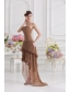 Saddle Brown A-line Strapless Chiffon High-low Prom Dress with Beading MDC6FVPD249