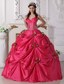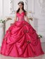 You will be eye-catching in this wonderful hot pink quinceanera dress. It features a beautiful bodice with spaghetti Straps and the mid-section heavily adorned with beadings. The skirt is gethered by fabric flowers and green leaves, making the dress more gracious.