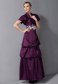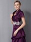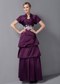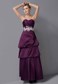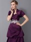This gorgeous strapless dress is sure to work wonders for any figure! Its tuck-sculpted design is nicely enhanced by the lustrous quality of its chic material. Dramatic pleats radiate across the sweetheart neckline bodice. The floor-length skirt has a cupcake shape that adds its overal fullness. The floral applique highlights the mid-section and everything`s topped off by a matching, short-sleeved bolero.