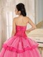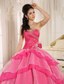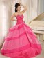The hot pink floor length organza gown is your perfect choice to attend ball, wedding and party. Fitting bodice design with shinning beading makes the gown so beautiful and sexy that you can gain more attention and no matter what you attend, you will become the spotlight. The refined flower in the mid-section give you a lovely impression. Besides, the puffy skirt is adorned with tiered of sheer organza that add another dimension of beauty to an already lovely gown. A lace up corset style closure in the back secures the dress in place.