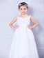 What are you looking for in a flower dress? If it 痵 classic elegance and modern sparkle that will make younger girls feel special at formal occasions, then this may be the dress for you! This white one with a zipper closure features a V-shaped neckline and two spaghetti straps both on the bodice abounding shining beading and back which add a dainty touch. The waistband adds a lovely effect. The skirt with sheer tulle ovelay to floor flares out in a dramatic way that is perfect for twirling and spinning the night away.