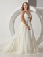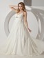 Simple designed dresses can also leave a longlasting impression, this one is an excellent example. The bodice features a V-neck style with the spaghetti straps and a keyhole in the upper belly area is the unique of this dress. The floor length skirt with a circle of trim flows gracefully to create a pretty brush train in the back, and a zipper up closure completes the look.