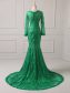 Zipper Mother of Groom Dress Green for Military Ball and Beach with Lace Brush Train MDCSWMD037